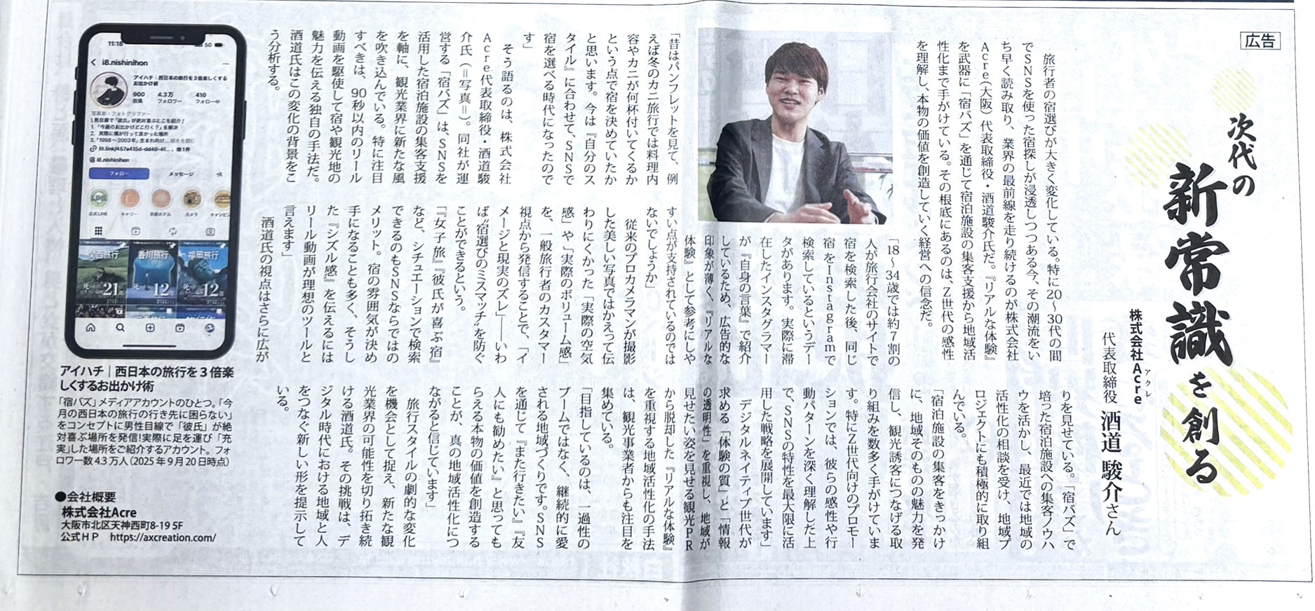 このたび、産經新聞にて、株式会社Acreが運営する宿泊施設向けSNS集客サービス「宿バズ」の取り組みについて掲載いただきました。